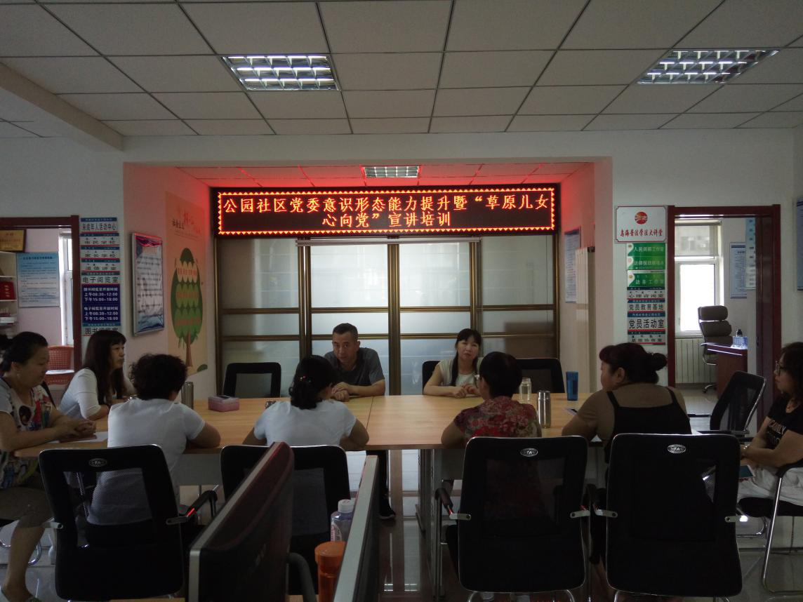 2017年7月18日上午,凤凰岭街道公园社区开展了“草原儿女心向党”主题宣讲活动,街道人大工委主任周慧德、公园社区两委人员及辖区党员领导干部参加了宣讲会,公园社区宣传委员王彩练向各党员传达了乌海市委宣传部意识形态提升暨“草原儿女心向党”宣讲内容。